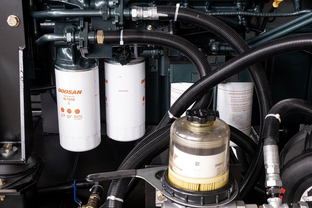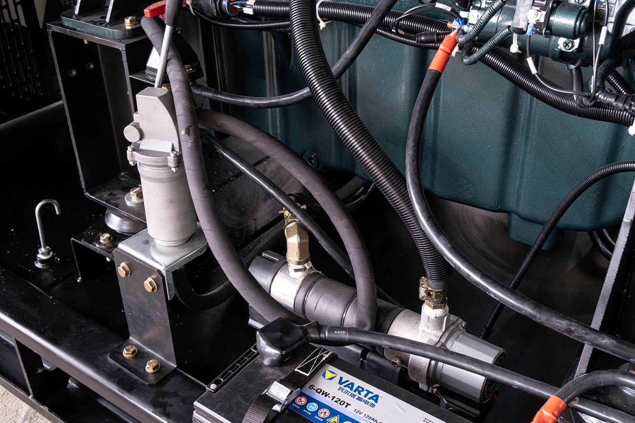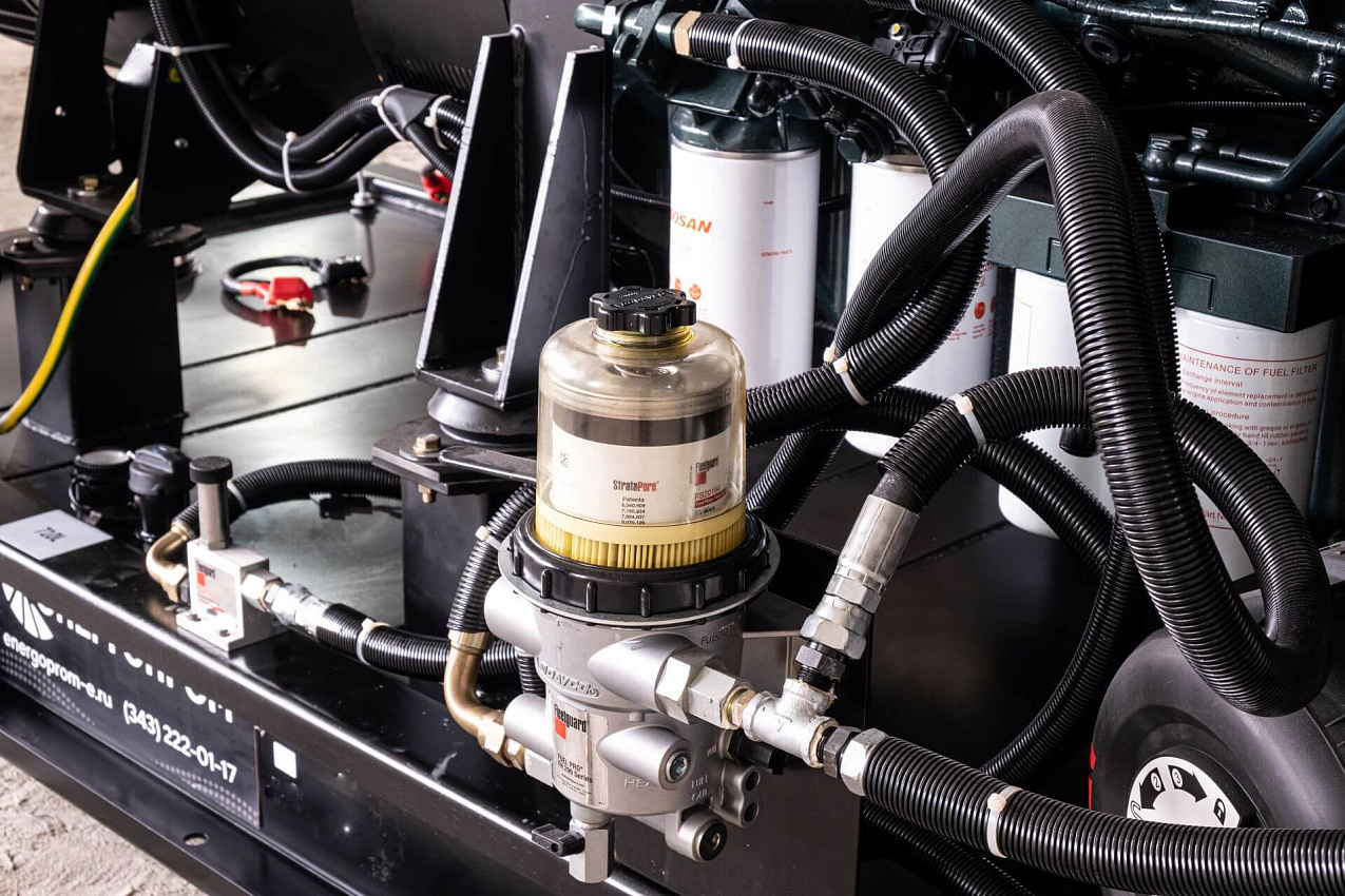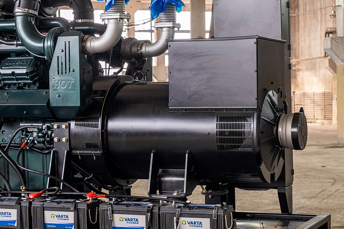 Автомат защиты генератора (Delixi 3Р), электрический подогреватель охлаждающей жидкости, электронный датчик уровня топлива, устройство подзарядки АКБ, промышленный глушитель, аккумуляторная батарея